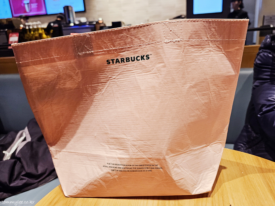지인분께서 토트백인 줄 알았는데 끈이 길어서 좋다고 하시네요.. 의외로 숄더백이었음.. 스타벅스 로고 선명하게 들어가 있고 해서 나름 만족하신다고 함..