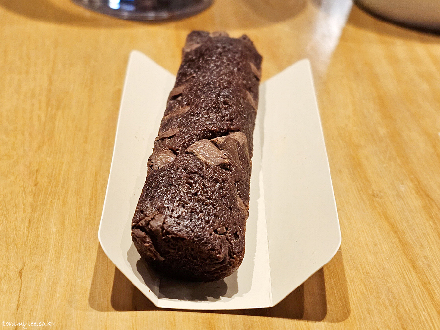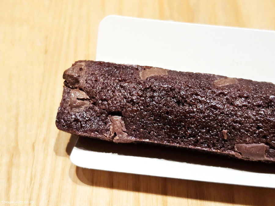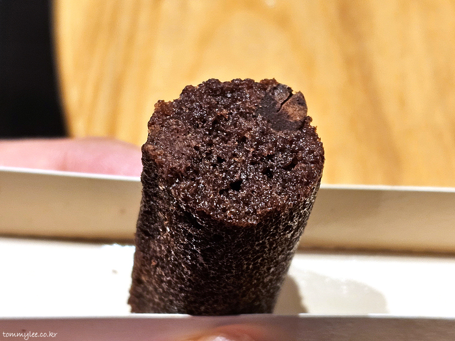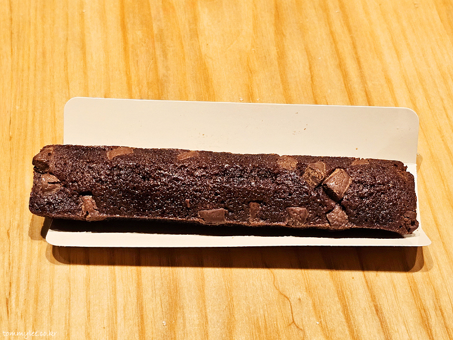 길쭉한 초콜릿 피낭시에의 모습.. 휘낭시에치곤 상당히 볼륨이 있습니다.. 이 가격에 이 정도 볼륨이면 가격이 꽤 저렴하게 책정되어 있는 거란..