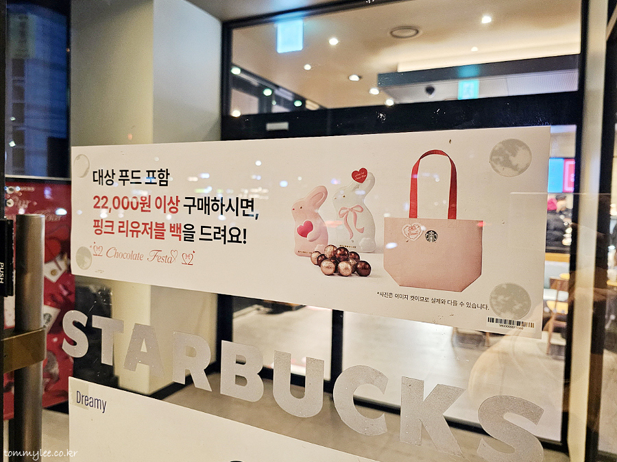 STARBUCKS CHOCOLATE FESTA.. 스타벅스 초콜릿 페스타.. 대상 푸드 포함 22,000원 이상 구매 시 핑크 리유저블 백을 드려요..