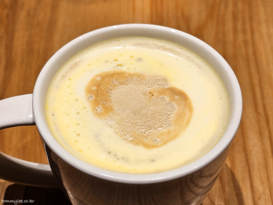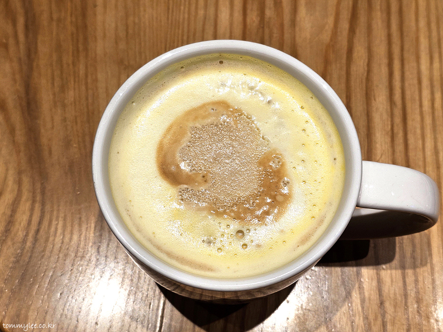 혹시 하트모양을 만들어 보려고 노력(?)해주신 건가 한참을 생각해봤는데 아무리 봐도 아닌 듯.. ㅋㅋㅋ.. 프렌치 바닐라 시럽의 라떼에 에스프레소 크림이 올라가는 구성인데 상딩히 특이한 비주얼이 나오네요..