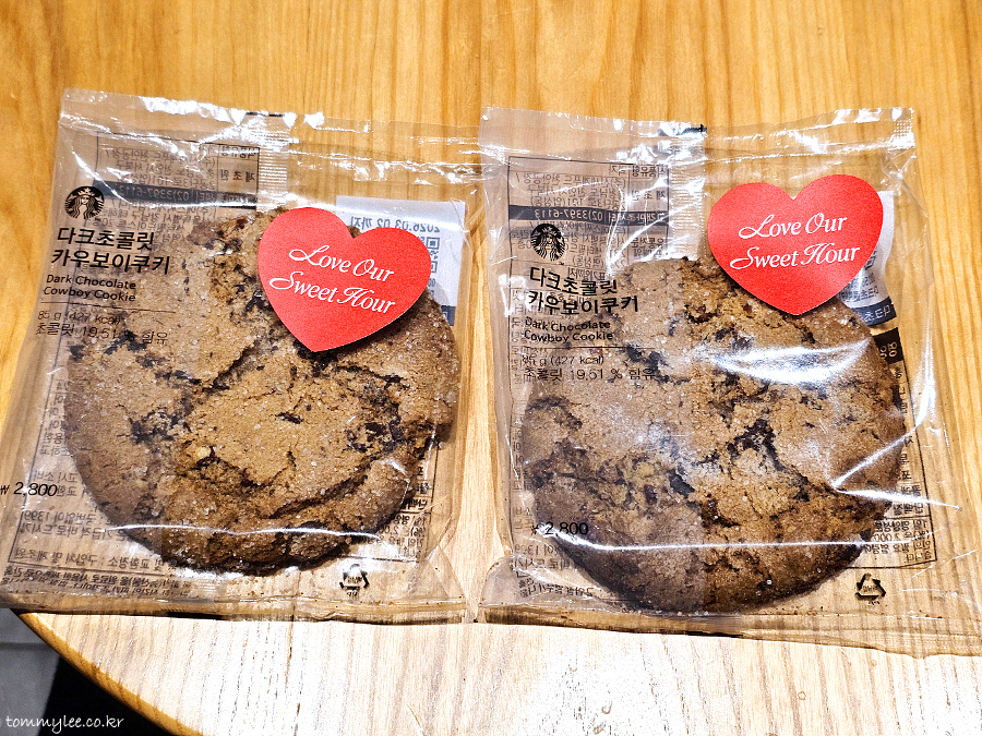 다크 초콜릿 카우보이 쿠키는 지인분께서 워낙 좋아하셔서 또 주문하게 될는지도 모르겠네요.. 케이크보다 쿠키가 더 맛나다고 하시니 뭐.. 암튼 발렌타인 기념 선물도 받고 초콜릿도 먹고 마시고 훈훈한 스타벅스가 되었다는 스토리..