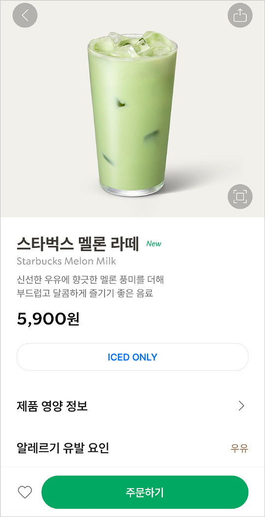 STARBUCKS MELON MILK.. 스타벅스 멜론 라떼.. 톨 5,900원..