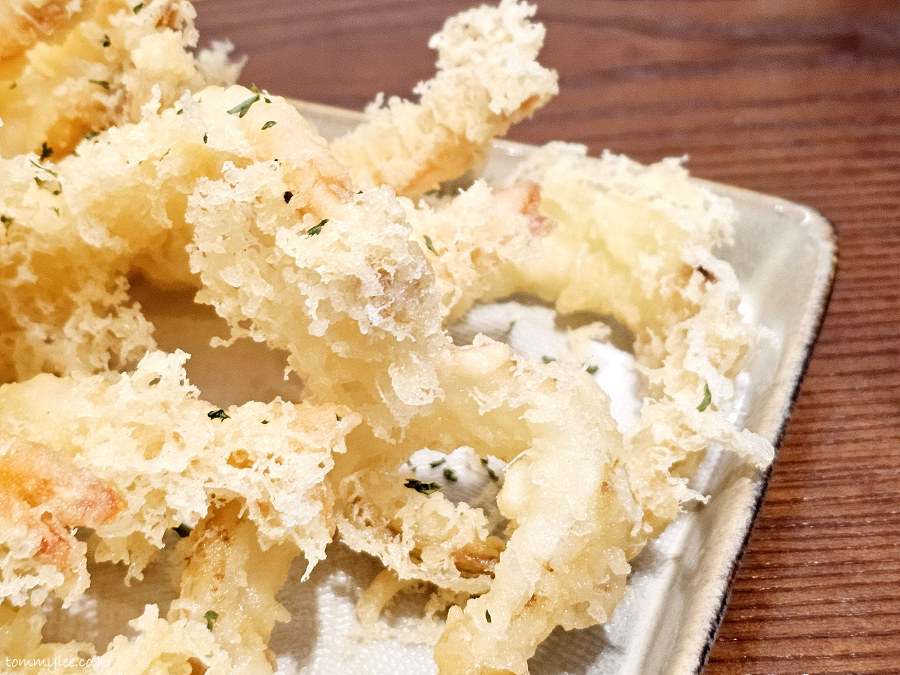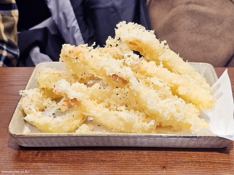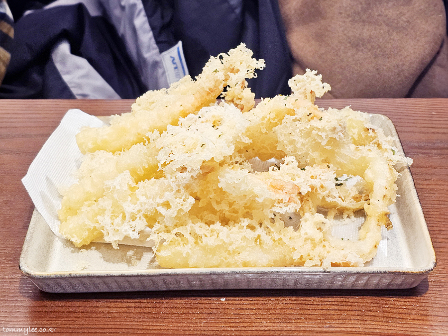 튀겨내자마자 바로 나오기 때문에 정말 빨리 나오고, 신선도 또한 좋고.. 초밥 주문 시 제공되는 우동에도 곁들이기에 적합한 메뉴라 무조건 주문하시라고 추천해드리고 싶은 메뉴네요..