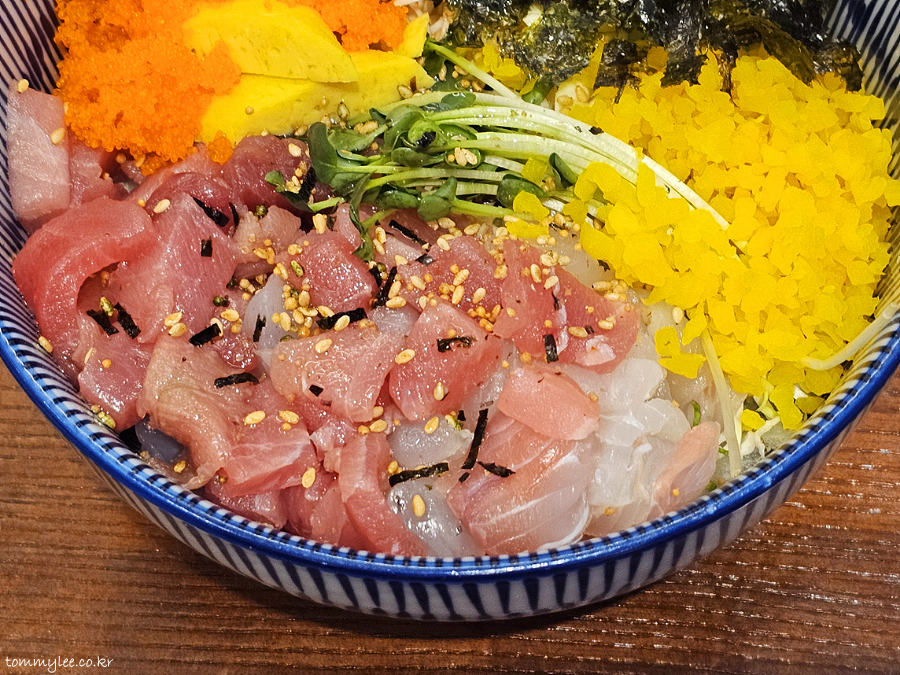 회는 다이스 형태로 썰어져서 들어갑니다.. 생선회는 참치, 연어, 도미, 광어 등의 노코리 사시미를 기본으로 하는데요.. 구성은 매번 바뀌는 것 같습니다.. 지난번에는 연어가 올라갔는데 이번에는 빠져 줘서 저에겐 오히려 더 좋았던.. ㅋㅋㅋ..