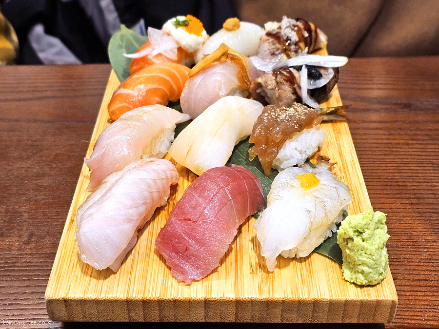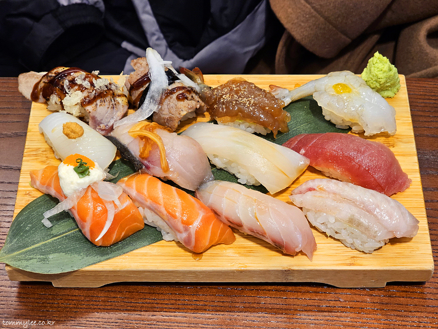 스시온기는 판초밥전문점이다 보니 다양한 판초밥 메뉴가 있는데요.. 지인분들의 평가로는 12관이 나오는 이 특선 초밥이 가장 가성비가 좋다고 합니다.. 최근엔 거의 이것만 주문하시는 듯..