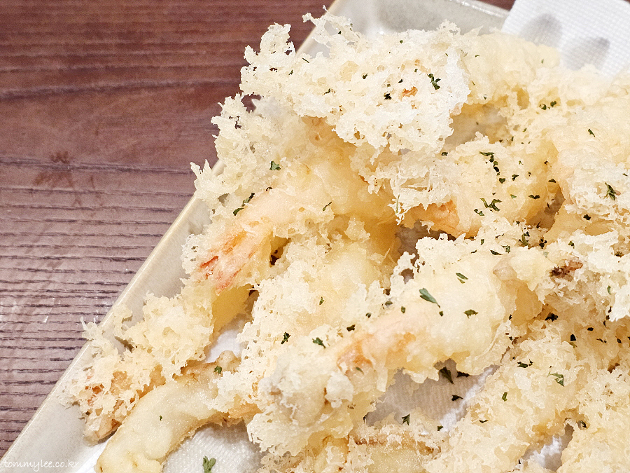 샐러드 다 먹자마자 바로 등장해 준 에비텐 새우튀김입니다.. 새우튀김은 6마리 8천원, 12마리 15천원으로 12마리 주문이 살짝 더 유리하답니다..
