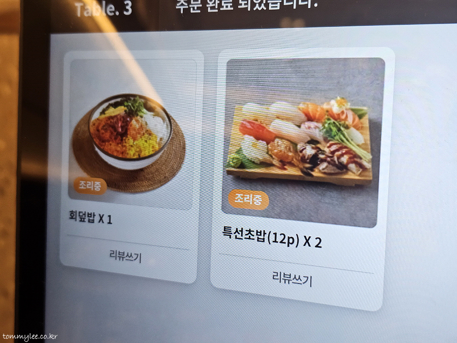 지인분들께서 도착하기 전에 회덮밥과 특선초밥을 미리 주문 완료..