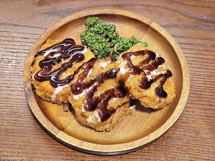 부드러운 감자 무스가 들어가는 크림 고로케인데요.. 이게 또 별미랍니다.. 정품 메뉴 가격은 4P 7,000원이니까 대략 5,500원 상당의 서비스 메뉴로 볼 수 있어요..