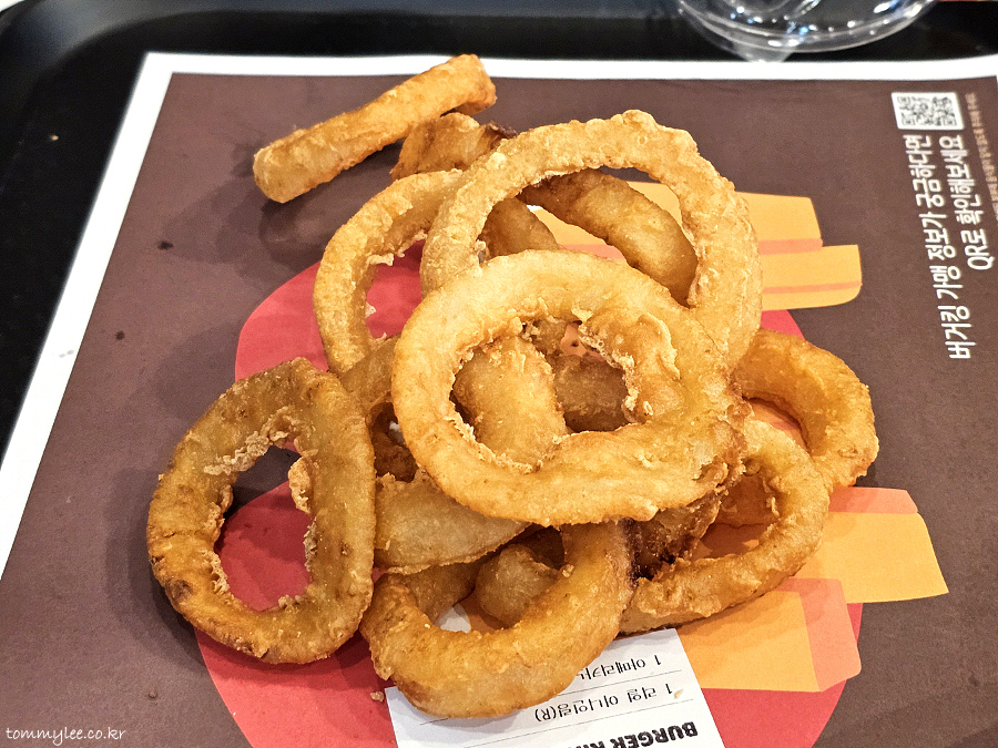 트레이에 어니언링을 쏟아 보면 이런 느낌.. 오늘은 조금 튀김 상태가 양호하진 않네요.. 와퍼 만드는데 집중을 하셔서 그런지.. ㅡㅡ;;..