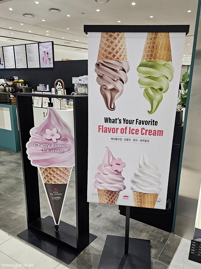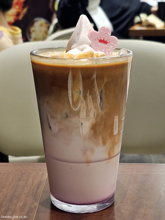 카페라떼 베이스에는 체리가 아닌 체리블라썸 파우더가 들어가서.. 토핑인 아이스크림과는 달리 라떼는 체리블라썸 맛이랍니다.. 그래서 두 가지 맛을 즐길 수 있어서 뭔가 더 이득인 기분도 들고 좋네요..