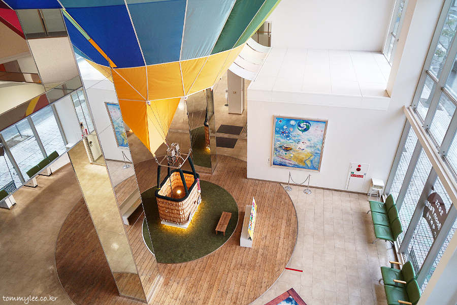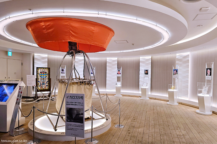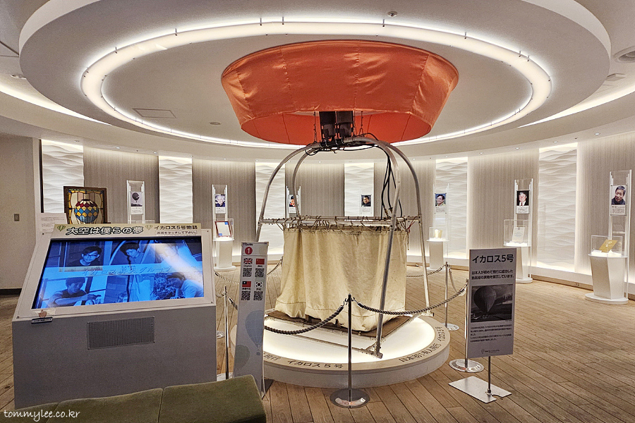 가장 먼저 저의 눈길을 사로잡은 곳은 기구의 전당.. 여기가 뮤지엄 내에서도 압도적으로 밝아서 처음으로 올 수밖에 없었달까.. 기구의 전당에는 1969년 일본 최고로 유인 비행에 성공한 벌룬 이카로스 5호의 실물이 전시되고 있답니다.. 기대와는 달리 사가 출신이 만든 건 아니더란.. ㅠ.ㅠ..