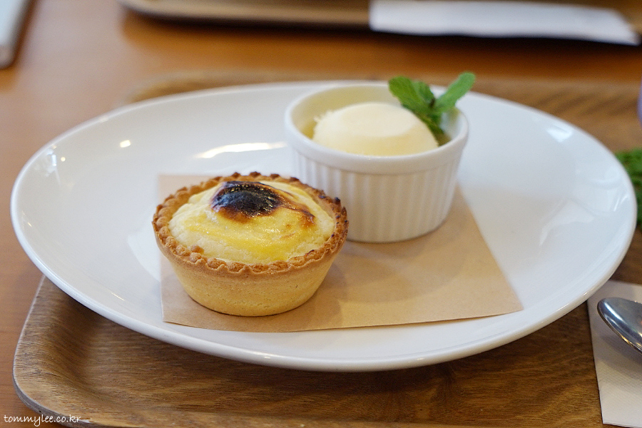 매장에서 직접 바로 구워낸 고구마 치즈 타르트인 야키타테 러블리의 케이크 세트입니다.. 바닐라 아이스크림 1스쿱이 함께 제공되고요..