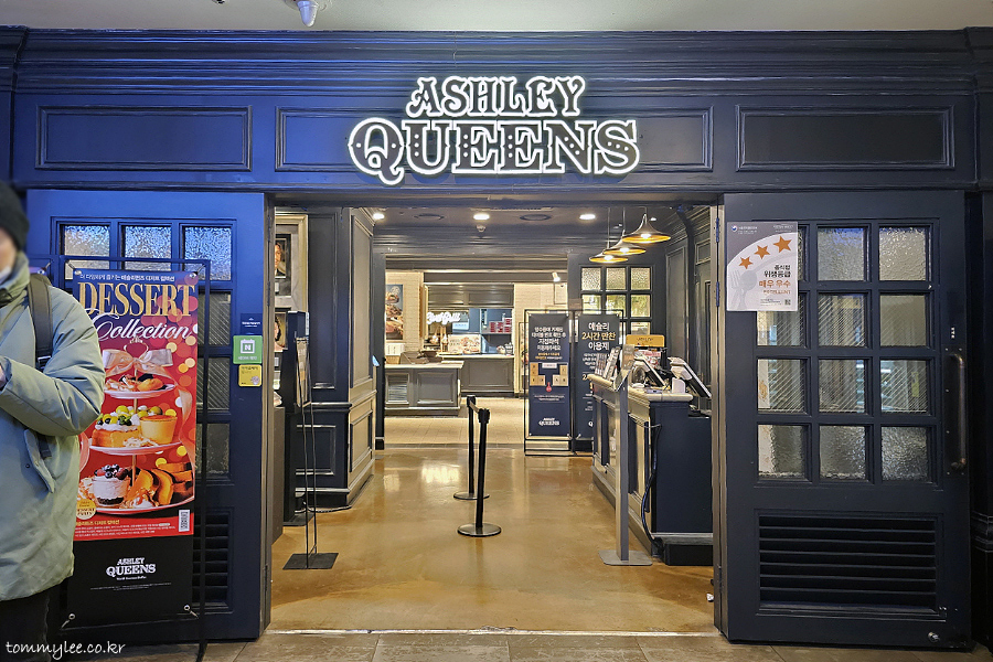 ASHLEY QUEENS.. JONGGAK STATION.. 애슐리퀸즈 종각역점.. 영업시간 : 11:00~21:00.. 주소 : 서울 종로구 종로 51 종로타워 지하 1층.. 전화 : 0507-1430-1031.. 브레이크타임 없고 라스트오더 21시..