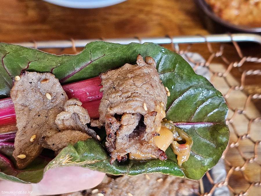 불고기는 기름 쪽 빠지고 담백해 그냥 먹어도 맛있지만 쌈채소와 함께 먹으면 더 맛있습니다.. 채소 종류를 원하는 대로 먹을 수 있고 쌈장이 고급진 맛이라 쌈 싸 먹는 게 무조건 이득에요..