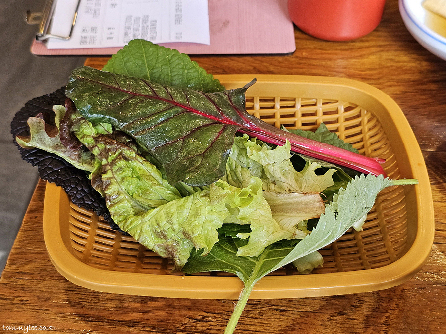 강경불고기의 인기 포인트는 바로 이 쌈채소 무한리필.. 비어 있는 작은 소쿠리를 주시는데 여기서 셀프로 쌈채소를 골라 와서 불고기랑 같이 먹으면 되는 것 같네요.. 직원분은 너무나도 바쁘셔서 일절 설명이 없으셨지만 그냥 눈칫껏 이용했습니다..