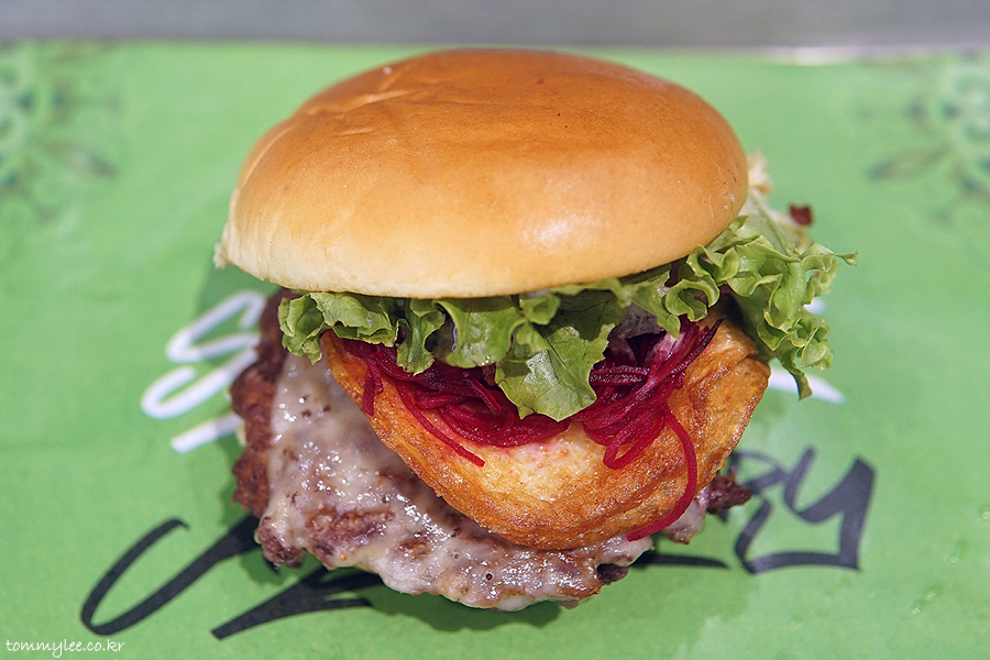 진한 맛의 비프 패티에 샤르르 녹아내린 화이트체다 크리스피한 에그패티에 산뜻한 비트피클 거기에 깊은 맛의 장아찌와 아이올리소스 모두모두 굿굿..