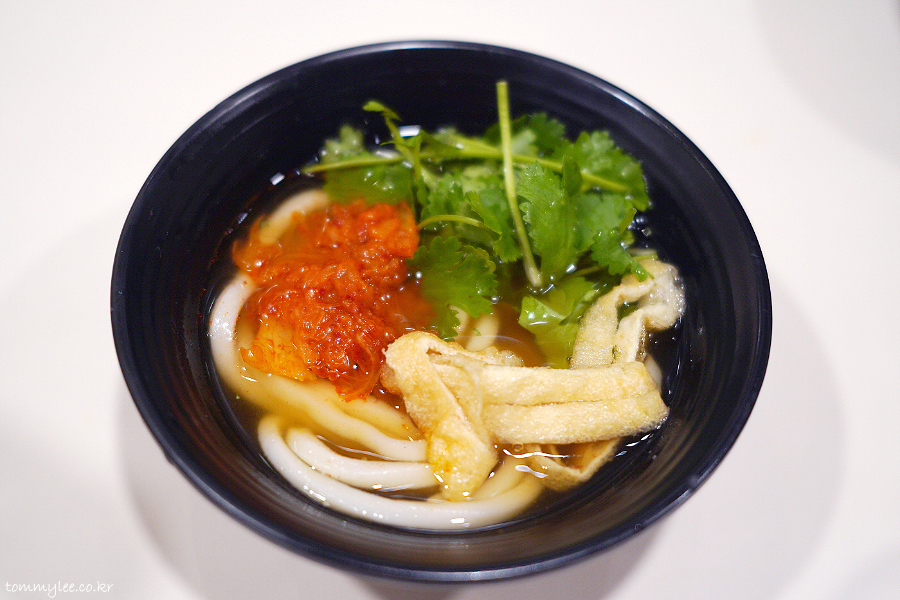 매콤한 김치우동에 이번엔 유부와 고수를 토핑해 다시 에스닉풍 우동을 연출하셨네요.. 라이브 누들바에 고수 있다고 너무 흡족해 하심..