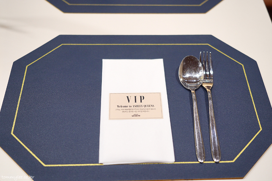 애슐리 VIP만의 테이블 세팅 서비스.. 테이블 매트와 냅킨, 실버가 가지런히 세팅되어 있는 모습.. 지인분들께서 왜 우리 테이블에만 이게 깔려 있냐고 의아해하심.. VIP 서비스라니까요.. ㅡㅡㅋ..